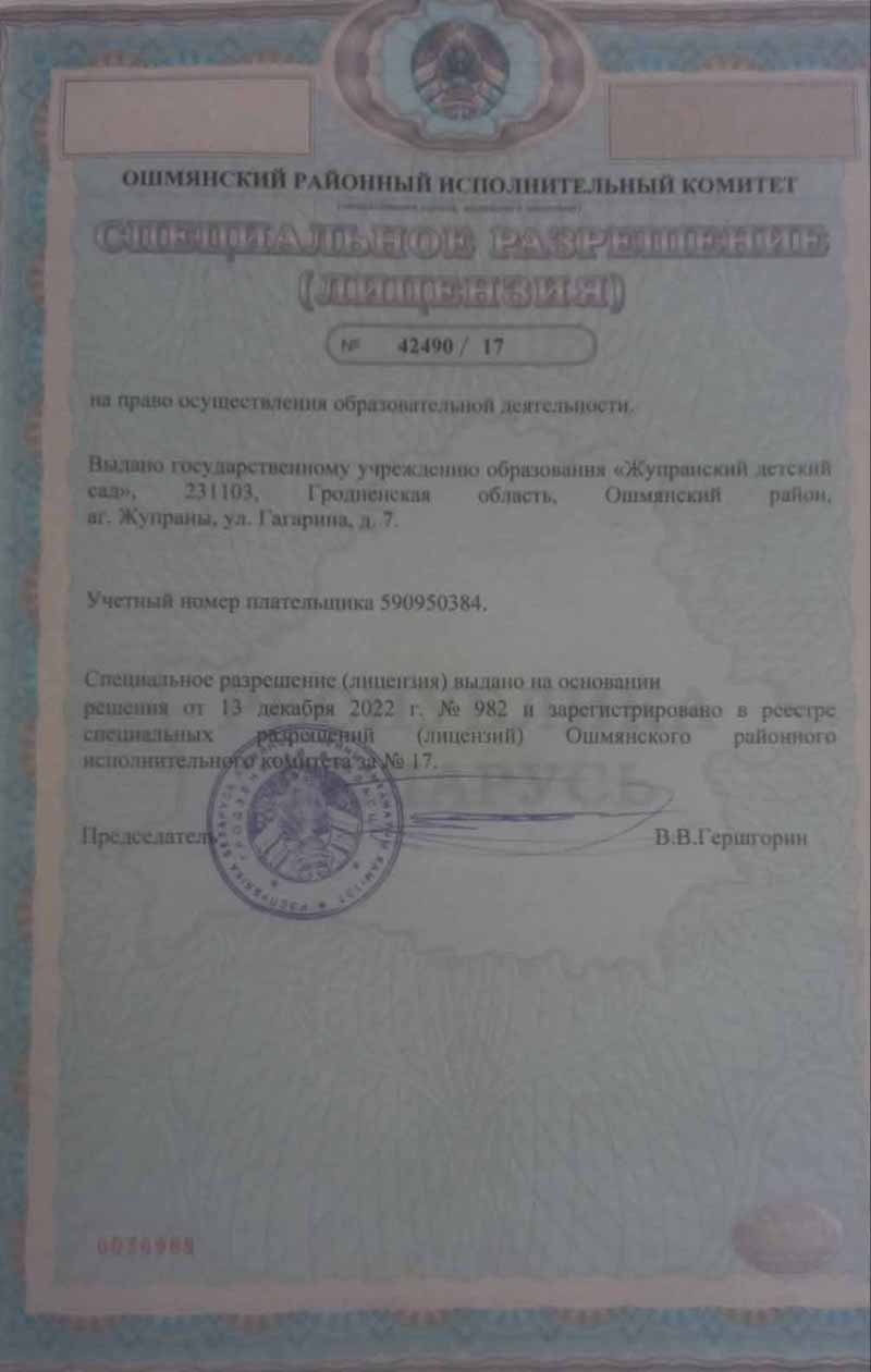 - 231102, Ошмянский район, Гродненская область, аг. Жупраны, улица Гагарина, 7